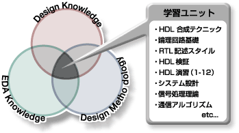 HDLABは、豊富な設計経験と先端ツールに対する実務的ノウハウに基づく複数のオリジナル教育ユニットをお客様の要求に応じて組み合せ、ビルディング・ブロック形式のカスタムなトレーニングコースを提供します。